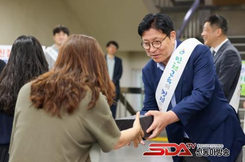 µµ¼ºÈÆ ±³À°°¨Àº °£ºÎ °ø¹«¿øµé°ú ÇÔ²² û·Å ¹®±¸°¡ ÀûÈù ¾î±ú¶ì¸¦ Âø¿ëÇϰí Ãâ±Ù ½Ã°£¿¡ ¸ÂÃç Á÷¿øµé¿¡°Ô û·Å È«º¸¹°À» Á÷Á¢ ¹èºÎÇß´Ù.