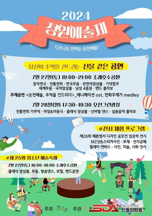 ´õºÒ¾î, Á¤¿ø¿¹¼úÁ¦¿Í ¿¬°èÇÏ¿© Á¦25ȸ ¼øÃµÃ»¼Ò³â¿¹¼úÃàÁ¦°¡ 27ÀÏ(Åä) 16½ÃÁ¶·ÊÈ£¼ö°ø¿ø °ø¿¬Àå¿¡¼ ÁøÇàµÇ¸ç, Á¦26ȸ ¿¹»Û¿±¼ µðÀÚÀÎ °ø¸ð ÀÔ»óÀÛ Àü½Ãµµ 27ÀÏ(Åä) ~ 28ÀÏ(ÀÏ) ÀÌÆ² µ¿¾È ¿¸°´Ù.