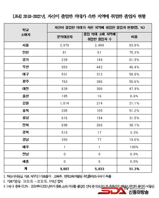 -Áö¿ª ÀÇ´ë Á¹¾÷»ýÀÌ ÇØ´ç Áö¿ª º´¿ø Ãë¾÷·ü °æºÏ 3.3%, ¿ï»ê 8.6%, °æ³² 19.6%¿¡ ºÒ°ú