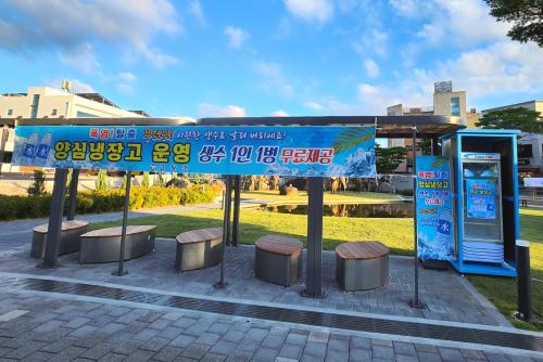¹«´õ¿î ¿©¸§, ±æÀ» Áö³ª´Â ÁֹεéÀÌ ¹«·á·Î ½Ã¿øÇÑ »ý¼ö¸¦ ¸¶½Ã°í ´õÀ§¸¦ ½ÄÈú ¼ö ÀÖµµ·Ï °Å¸® °÷°÷¿¡ ¸¶·ÃµÈ »ý¼ö ³ÃÀå°í´Ù.