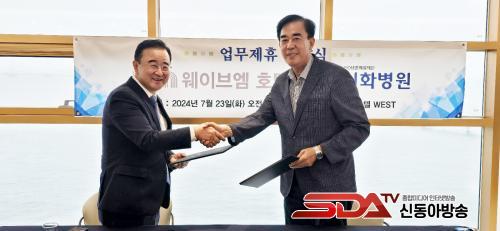 À̳¯ MOU¿¡ ¾Õ¼ ÀÌ»ó¸¸ ´ëÇ¥´Â Àλ縻À» ÅëÇØ "¿þÀ̺꿥ȣÅÚ°ú ½ÃȺ´¿øÀº Áö¿ª»çȸÀÇ ¹ßÀü°ú Áö¿ª¹ÎÀ» À§ÇÑ ¼ºñ½º»ê¾÷À̶ó´Â °øÅëÁ¡ÀÌ ÀÖ´Ù"¸ç "¿À´Ã ¿þÀ̺꿥ȣÅÚ°ú ½ÃȺ´¿øÀÌ MOU¸¦ ÅëÇØ ÀÓÁ÷¿øÀÇ º¹ÁöÇâ»ó°ú Áö¿ªÈ£ÅÚÀÇ È°¼ºÈ¿¡ »óÈ£Çù·ÂÇÏ´Â °è±â°¡ ¸¶·ÃµÆ´Ù"°í ¸»Çß´Ù.