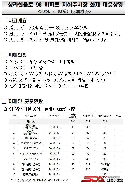 ÀÎõ±¤¿ª½Ã¼­±¸Ã» "û¶óÇÑ¿ï·Î 96 ¾ÆÆÄÆ® ÁöÇÏÁÖÂ÷Àå È­Àç" ´ëÀÀ»óȲ ¾ð·Ðºê¸®ÇÎ