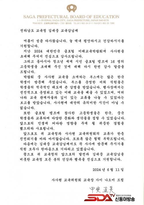 [½Åµ¿¾Æ¹æ¼Û=À̽ŵ¿±âÀÚ] Áö³­ 5¿ù ¿©¼ö¿¡¼­ ¿­¸° ¡®2024 ´ëÇѹα¹ ±Û·ÎÄà ¹Ì·¡±³À° ¹Ú¶÷ȸ¡¯¿¡ Âü¿©Çß´ø Áß±¹ »ê½Ã¼º(ߣà¤àý) ±³À°Ã»°ú ÀϺ» »ç°¡Çö(ñ¥ùÅ県) ±³À°À§¿øÈ¸°¡ ÃÖ±Ù Àü¶ó³²µµ±³À°Ã»¿¡ °¨»çÀÇ ÆíÁö¸¦ º¸³»¿Ô´Ù.