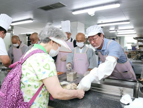 Á¤ ½ÃÀåÀº ¾à 500¸íÀÇ ¾î¸£½Åµé²² ¹è½ÄºÀ»ç¸¦ ÇÏ¸é¼ ¸»º¹À» ¸ÂÀÌÇÏ¿© ¹«´õÀ§ ¾î¸£½ÅµéÀÇ ¾ÈºÎ¸¦ »ìÇÇ´Â µî ¼ÒÅëÀÇ ½Ã°£À» °¡Á³´Ù.