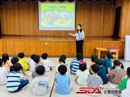 ±³À°Àº ¸ÕÀú '³ë´ã! µ¿¿ä¿Í À²µ¿'À» ÅëÇØ ½ÃÀ۵Ǿú´Ù. ¾ÆÀ̵éÀº °æÄèÇÑ À½¾Ç°ú ½Å³ª´Â À²µ¿¿¡ ¸ÂÃç ½Åü¸¦ ¿òÁ÷À̸ç Èí¿¬ ¿¹¹æÀÇ Á߿伺À» ¹è¿ü´Ù. ÀÌ °úÁ¤¿¡¼ ¾ÆÀ̵éÀº °£Á¢Èí¿¬ÀÇ À¯ÇؼºÀ» ÀÚ¿¬½º·´°Ô ÀÌÇØÇϰí, °Ç°ÇÑ »ýȰ½À°ü Çü¼ºÀÇ Çʿ伺À» ´À³¢´Â ½Ã°£À» °¡Á³´Ù. À̾îÁø '³ë´ã ¹êµå¿Í Ä£±¸µé' µ¿È ±¸¿¬ ½Ã°£¿¡¼´Â ¹®È¿¹¼úÀû ¿ä¼Ò¸¦ Á¢¸ñÇØ Èí¿¬ÀÇ À§Ç輺À» üÇèÇÏ´Â ÀÇ¹Ì ÀÖ´Â ½Ã°£ÀÌ µÇ¾ú´Ù. µ¿È¸¦ ÅëÇØ Èí¿¬ÀÌ °Ç°¿¡ ¹ÌÄ¡´Â ¾Ç¿µÇâÀ» ½±°Ô ÀÌÇØÇÒ ¼ö ÀÖµµ·Ï µ½°í, Èí¿¬ÀÌ ¹ÌÄ¡´Â ºÎÁ¤ÀûÀÎ ¿µÇâÀ» º¸´Ù »ý»ýÇÏ°Ô Àü´ÞÇß´Ù. ¸¶Áö¸·À¸·Î ¾ÆÀ̵éÀº µ¿È¸¦ µè°í O, X ÄûÁ Ç®¸ç ¹è¿î ³»¿ëÀ» ´Ù½Ã Çѹø µÇ»õ±â´Â ½Ã°£À» °¡Á³´Ù. ¶ÇÇÑ, Ä£±¸¿Í ÇÔ²² Ä«µå ¸ÂÃ߱⠰ÔÀÓÀ» ÅëÇØ ÇнÀÇÑ ³»¿ëÀ» ÀçÈ®ÀÎÇÏ´Â µî Àû±ØÀûÀ¸·Î Âü¿©ÇÏ´Â ¸ð½ÀÀ» º¸¿´´Ù.