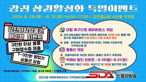 À̹ø À̺¥Æ®´Â °Áø±º ³» ¼Òºñ ÃËÁøÀ» À¯µµÇϰí Áö¿ª°æÁ¦¸¦ Ȱ¼ºÈÇϱâ À§ÇØ ¸¶·ÃµÇ¾úÀ¸¸ç, ÀÌ¿Í ÇÔ²² ÇϸÆÃàÁ¦±â°£ °ÁøÀ¾ »ó±ÇȰ¼ºÈ¸¦ À§ÇÑ ´Ù¾çÇÑ À̺¥Æ®°¡ ÆîÃÄÁ® Áö¿ª »ó±Ç Ȱ¼ºÈ¿¡ Å« ±â´ë¸¦ ¸ðÀ¸°í ÀÖ´Ù.