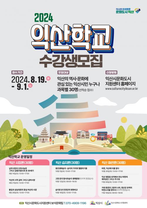 'ÀÍ»êÇб³'¶õ ¿ª»ç, ¹®È, Àι° µî ÀÍ»êÀÇ ´Ù¾çÇÑ ºÐ¾ß¸¦ ޱ¸ÇÏ´Â ÇöÀå Áß½ÉÇü ±³À° ÇÁ·Î±×·¥ÀÌ´Ù. À̹ø ÀÍ»êÇб³´Â 9¿ù 14ÀÏ ½ÃÀÛÇØ ¸ÅÁÖ Åä¿äÀÏ ¿ÀÈÄ 1½ÃºÎÅÍ 5½Ã±îÁö ÁøÇàµÈ´Ù. ÀÍ»ê ½ÃÀå·Ð, ÀÍ»ê ½ÀÁö·Ð, ÀÍ»ê ¸¶ÇÑ·Ð µî 3°ú¸ñÀÌ ¿î¿µµÇ¸ç °ú¸ñ´ç 3ÁÖ°£ ÁøÇàµÈ´Ù.