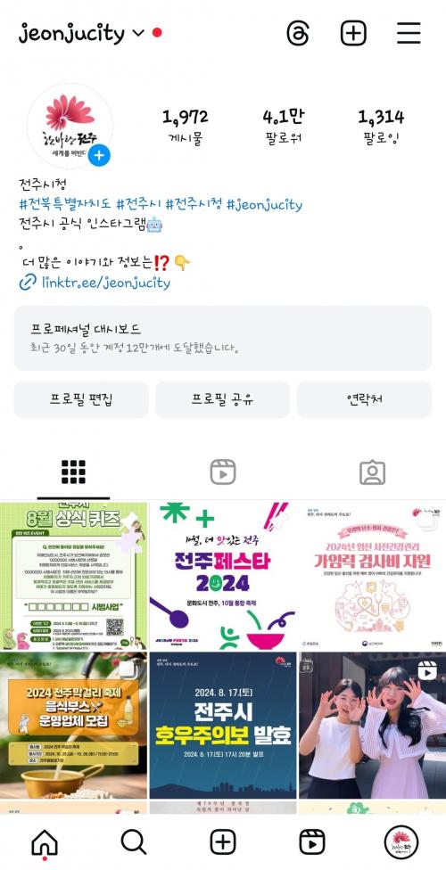 ½Ã´Â ÀÌ·¯ÇÑ °Á¡À» »ì·Á ÀüÁֽà ´ëÇ¥ ÃàÁ¦ÀÎ ¡®ÀüÁÖÆä½ºÅ¸ 2024¡¯°¡ ÁøÇàµÇ´Â 10¿ù °¡À» ¿©Çà ±â°£ µ¿¾È ÀüÁÖ½Ã¿Í ÀüÁÖÇÑ¿Á¸¶À»À» È«º¸Çϱâ À§ÇØ SNS¸¦ Àû±Ø Ȱ¿ëÇÒ °èȹÀÌ´Ù.