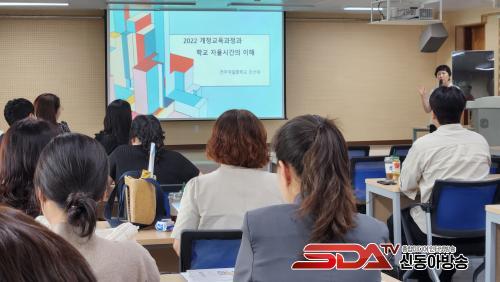 ¿¬¼ö´Â Çб³ÀÚÀ²½Ã°£ ¿¬±¸Çб³ÀÎ ÀüÁÖ´öÀÏÁßÇб³ ¹Î¼±¾Ö ±³»çÀÇ °­ÀÇ·Î ½ÃÀ۵Ǿú´Ù. ¡ã2022 °³Á¤ ±³À°°úÁ¤ÀÇ °³Á¤ ÁßÁ¡ ¹× ¹æÇâ, ¡ãÇб³ÀÚÀ²½Ã°£ÀÇ Á¦¾È ¹è°æ¿¡ ´ëÇÑ »ó¼¼ÇÑ ¼³¸í¿¡ À̾ ¡ãÇÁ·ÎÁ§Æ® ÇнÀ ¿î¿µ »ç·Ê ³ª´®, ¡ãÇб³ÀÚÀ²½Ã°£ ¼³°è ¹× ¿î¿µ Ȱ¼ºÈ­ ¹æ¾È ÅäÀǰ¡ ÁøÇàµÇ¾ú´Ù.