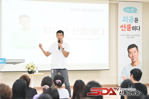 Çϳ²½Ã´Â 29ÀÏ °¨Àϰø°øº¹ÇÕû»ç 5Ãþ ´ë°­´ç¿¡¼­ ½Ã¹Î °¨ÀÏ¡¤À§·Ê ÁֹΠµî 230¿©¸íÀÌ Âü¼®ÇÑ °¡¿îµ¥ ¿­¸° ¡¸2024³â Çϳ²¸í»çƯ°­¡¹¿¡ °¡¼ö ¼ÇÀ» ÃʺùÇØ ¡®Áö±ÝÀº ¼±¹°ÀÌ´Ù¡¯¸¦ ÁÖÁ¦·Î ´ÙµÕÀÌ ¾çÀ° ³ëÇÏ¿ì¿Í ³ª´®ÀÇ ÇູÀ» Àü´ÞÇϴ Ư°­À» ÁøÇàÇß´Ù.