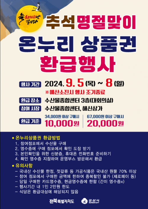 [½Åµ¿¾Æ¹æ¼Û=À̺´½Ä±âÀÚ] Ãß¼®¸ÂÀÌ ¼ö»ê¹° ¼Òºñ ÃËÁø ¹× Áö¿ª°æÁ¦ Ȱ¼ºÈ­¸¦ À§ÇØ ÀüºÏµµ¿Í ±º»ê½Ã°¡ ÀÚü ¼ö»ê¹° ¿Â´©¸®»óǰ±Ç ȯ±ÞÇà»ç¸¦ °³ÃÖÇÑ´Ù.
