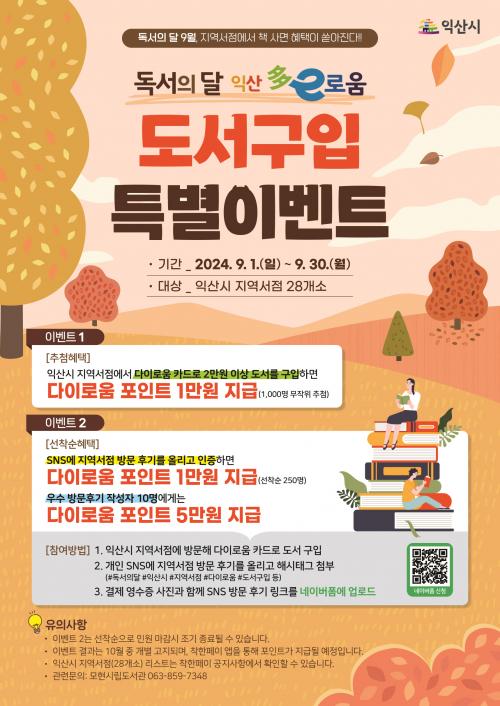 [½Åµ¿¾Æ¹æ¼Û=À̺´½Ä±âÀÚ] ÀÍ»ê½Ã°¡ µ¶¼­ÀÇ ´ÞÀ» ¸Â¾Æ 9¿ù ÇÑ ´Þ µ¿¾È Áö¿ª ¼­Á¡¿¡¼­ ´ÙÀ̷οòÀ¸·Î µµ¼­ ±¸ÀÔ ½Ã Ãß°¡ ÇýÅÃÀ» Á¦°øÇϴ Ưº°À̺¥Æ®¸¦ ÃßÁøÇÑ´Ù.