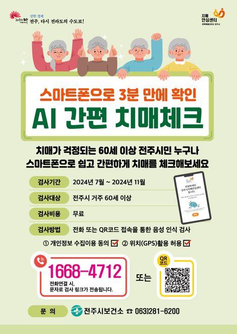 ÀÌ¿Í ÇÔ²² ÀüÁֽú¸°Ç¼Ò´Â 60¼¼ ÀÌ»ó ½Ã¹ÎµéÀÌ ½º¸¶Æ®ÆùÀ» ÀÌ¿ëÇØ 3ºÐ À̳»¿¡ °£´ÜÇÏ°Ô Ä¡¸Å ¿©ºÎ¸¦ üũÇÒ ¼ö ÀÖ´Â ÀΰøÁö´É(AI) °£ÆíÄ¡¸Åüũ ¼ºñ½ºµµ ¿î¿µÇϰí ÀÖ´Ù. ÀÌ ¼ºñ½º´Â ¿À´Â 11¿ù±îÁö ½º¸¶Æ®Æù ÀüÈ(1668-4712) ¶Ç´Â QRÄڵ带 ÅëÇØ ¸µÅ©¿¡ Á¢¼ÓÇϸé ÀÌ¿ëÇÒ ¼ö ÀÖ´Ù.