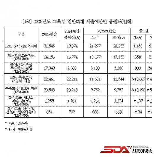 ³»³â ±³À°ºÎ Ư¼ö±³À° Áֿ俹»êµµ »è°¨µÈ °ÍÀ¸·Î ÆÄ¾ÇµÆ´Ù. ±³À°ºÎ Ư¼ö±³À° ³»½ÇÈ Áö¿ø»ç¾÷ ¿¹»êÀº 2024³â º»¿¹»ê 222¾ï 1100¸¸¿ø ´ëºñ 2025³â 115¾ï 4400¸¸¿øÀ¸·Î, ÃÑ 106¾ï 6700¸¸¿ø(48%)ÀÌ °¨¾×µÇ¾ú´Ù. ÇØ´ç ¿¹»êÀº ¡ãƯ¼ö±³À° Á¤Ã¥¿¬±¸ ¹× ½ÇÅÂÁ¶»ç ¡ãÀå¾ÖÀÎ »ý¾Ö ´Ü°èº° Áö¿ø ¡ãƯ¼ö±³À° ±³À°°úÁ¤ ¹× ±³°ú¿ëµµ¼ °³¹ß ¡ãÀå¾ÖÇлý µðÁöÅÐ ±³À° Áö¿ø µî¿¡ »ç¿ëµÈ´Ù.