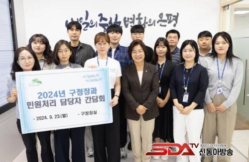 À̹ø °£´ãȸ´Â »ýȰº¹Áö°ú, ¼¼¹«ÇàÁ¤°ú, Àç»ê¼¼°ú, Áö¹æ¼Òµæ¼¼°ú, ºÎµ¿»êÁ¤º¸°ú, ±³ÅëÇàÁ¤°ú, ÁÖÂ÷°ü¸®°ú, º¸°ÇÀ§»ý°ú µî ¹Î¿ø ºÎ¼¿¡¼ Á÷¿ø 12¸íÀÌ Âü¼®Çß´Ù. Àú¿¬Â÷ ¹Î¿øÃ³¸®´ã´çÀÚÀÇ ¹Î¿øÃ³¸® ¾÷¹«·Î Á÷Á¢ ¹Î¿øÀ» ÀÀ´ëÇÏ´Â Á÷¿øµéÀÌ ¾Ö·Î»çÇ×À» ÀÚÀ¯·Ó°Ô À̾߱âÇÒ ¼ö ÀÖ´Â ´ëÈÀÇ ½Ã°£À¸·Î ÁøÇàµÆ´Ù.