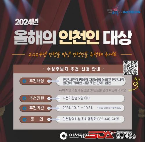 [½Åµ¿¾Æ¹æ¼Û ÀÎõ= À±¹Î½Ä±âÀÚ] ÀÎõ±¤¿ª½Ã´Â 2024³â ¡®¿ÃÇØÀÇ ÀÎõÀÎ ´ë»ó¡¯ Èĺ¸ÀÚ¸¦ 10¿ù 2ÀϺÎÅÍ 10¿ù 31ÀϱîÁö Ãßõ ¶Ç´Â ½ÅûÀ» ÅëÇØ Á¢¼öÇÑ´Ù°í ¹àÇû´Ù.