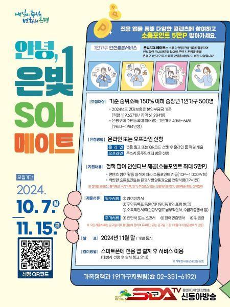 [½Åµ¿¾Æ¹æ¼Û ÀºÆò±¸=À̽ŵ¿±âÀÚ] ÀºÆò±¸(±¸Ã»Àå ±è¹Ì°æ)°¡ ³»´Þ 15ÀϱîÁö Àü±¹ ÃÖÃÊ·Î Àü¿ë Ç÷§ÆûÀ» Ȱ¿ëÇØ 1Àΰ¡±¸ÀÇ ¾ÈÀüµ¹º½¼­ºñ½º¸¦ Á¦°øÇÏ´Â ¡®¾È³ç, ÀººûSOL¸ÞÀÌÆ®¡¯ »ç¾÷ Âü¿©ÀÚ¸¦ ¸ðÁýÇÑ´Ù°í ¹àÇû´Ù.