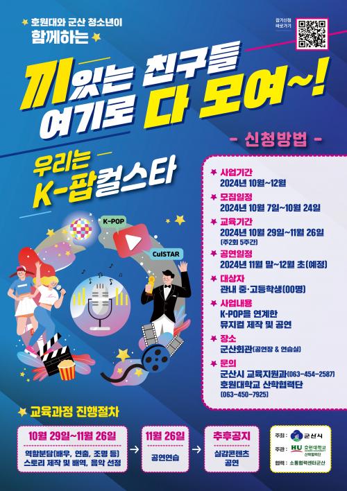 ±º»ê½Ã´Â ±º»êÁö¿ª û¼Ò³âµéÀÇ ¹®È¿¹¼ú ÇâÀ¯ ¹× Áø·Î üÇè È®´ë¸¦ À§ÇØ ´Ù¾çÇÑ ±³À°°úÁ¤À» °í¹ÎÇϰí ÀÖ´Ù. À̹ø¿¡ ¼±º¸ÀÌ´Â ¡®¿ì¸®´Â K-ÆËÄýºÅ¸¡¯ ¿ª½Ã ±× Áß ÇϳªÀÌ´Ù.