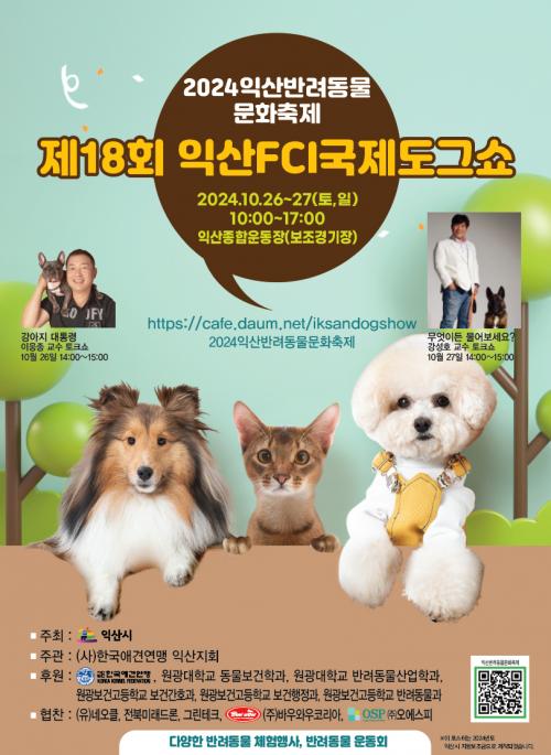 ÀÍ»ê½Ã´Â ¿À´Â 26~27ÀÏ ÀÍ»ê Á¾ÇտÀå º¸Á¶°æ±âÀå¿¡¼ '2024 ÀÍ»ê ¹Ý·Áµ¿¹° ¹®ÈÃàÁ¦ ¹× Á¦ 18ȸ ÀÍ»êFCI ±¹Á¦ µµ±×¼î'¸¦ °³ÃÖÇÑ´Ù.