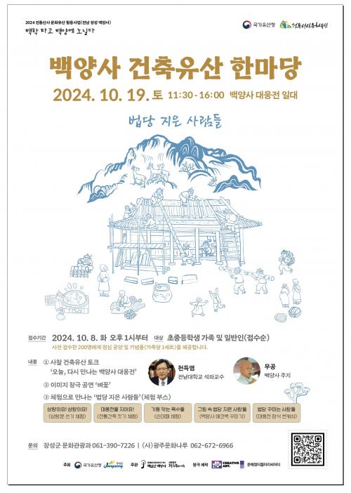 À强±º°ú ±¹°¡À¯»êûÀÌ ÁÖÃÖÇÏ°í ¹é¾ç»ç, ±¤ÁÖ¹®È³ª·ç°¡ ÁÖ°üÇÏ´Â ¡®°ÇÃàÀ¯»ê ÇѸ¶´ç – ¹ý´ç ÁöÀº »ç¶÷µé¡¯Àº ÀüÅë»ê»ç ¹®ÈÀ¯»ê Ȱ¿ë»ç¾÷ÀÇ ÀÏȯÀ¸·Î ¸¶·ÃµÈ ¹®È‧¿¹¼ú ÇÁ·Î±×·¥ÀÌ´Ù.