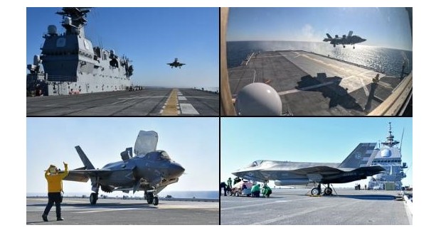2021³â ÀÌÁî¸ðÇÔ¿¡¼ F-35BÀÇ ÀÌÂø·ú ½ÃÇèÀ» ¸¶Ä£µ¥ À̾î, 20ÀÏ ¿ÀÈÄ ¹Ì±¹ ͏®Æ÷´Ï¾ÆÁÖ »÷µð¿¡ÀÌ°í ¾Õ¹Ù´Ù¿¡ ÆÄ°ßÇÑ °¡°¡ÇÔ¿¡¼ ¹Ì ÇØ±ºÀÇ F-35B°¡ óÀ½À¸·Î ¼öÁ÷ Âø·úÇß´Ù°í º¸µµÇß´Ù.