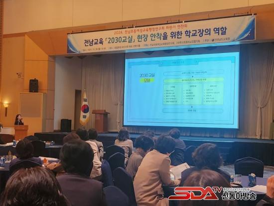 Àü¶ó³²µµ±³À°Ã» ±èº¸°æ ÀåÇаüÀÇ ¡®2030±³½Ç ±¸Ãࡤ¿î¿µ ¹æÇ⡯¿¡ ´ëÇÑ ¾È³»°¡ ÀÖ¾ú´Ù. 2030 ¹Ì·¡±³½Ç ¿î¿µÀ» ÅëÇØ Àü³² ¹Ì·¡±³À°À» ´ëºñÇÑ ¸ðµ¨ °³¹ß, ¼ö¾÷ ´ëÀüȯÀ» ÃËÁøÇÏ´Â 2030±³½Ç ¿î¿µ, ÀÚ¹ßÀûÀÎ ¼ö¾÷ ¿¬±¸ ¹®È Á¤ÂøÀ¸·Î ¼ö¾÷ Çõ½Å, 2030±³½Ç ºê·£µåÈ·Î ±Û·ÎÄà Àü³²±³À° ±³À°°æÀï·ÂÀ» °ÈÇÒ °ÍÀ̶ó°í °Á¶Çß´Ù.