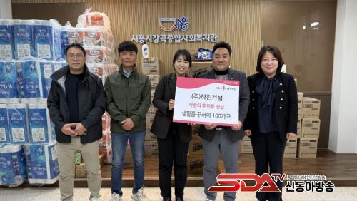 Àü´Þ½Ä¿¡´Â ¢ßÇÏÁø°Ç¼³ ¹Úâ±Ô ºÎ´ëÇ¥ ¹× °ü°èÀÚ¿Í ½ÃÈï½ÃÀÇȸ ÇÑÁö¼÷ ÀÇ¿øÀÌ Âü¼®Çß´Ù. »ýÇÊǰ ²Ù·¯¹Ì´Â µÎ·ç¸¶¸® ÈÞÁö, ¼¼Á¦, ¾ç¸», Ä©¼Ö µî ½Ç»ýȰ¿¡ ÀÚÁÖ ÇÊ¿äÇÑ ¹°Ç°µé·Î ±¸¼ºµÅ ÀÖ´Ù. ¢ßÇÏÁø°Ç¼³Àº À̹ø ÈÄ¿øÀ» ½ÃÀÛÀ¸·Î, ÇâÈÄ À¯»çÇÑ ¼ºñ½º ÀÌ¿ëÀÌ ¾î·Á¿î °¡±¸¿¡ ¹æ¿ª µîÀ» Áö¿øÇÒ ¿¹Á¤ÀÌ´Ù.
