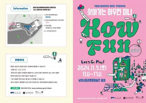 [½Åµ¿¾Æ¹æ¼Û=À̺´½Ä±âÀÚ] ³²¿ø½Ã(½ÃÀå ÃÖ°æ½Ä)´Â 11¿ù 9ÀÏ Åä¿äÀÏ 11½ÃºÎÅÍ 17½Ã±îÁö ³²¿ø½Ã¸³±èº´Á¾¹Ì¼ú°ü ÀÏ´ë¿¡¼­ ±¹¸³¾Æ½Ã¾Æ¹®È­Àü´çÀç´Ü(»çÀå ±è¼±¿Á)°ú ÇÔ²² ¡®¾î¸°ÀÌ¡¤°¡Á· ¹®È­ÃàÁ¦ How Fun(ÇÏ¿ìÆÝ)¡¯ Çà»ç¸¦ °³ÃÖÇÑ´Ù°í ¾Ë·Á¿Ô´Ù.