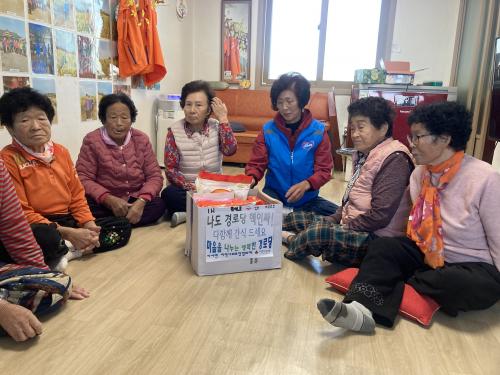 ÀÌ Æ¯È»ç¾÷Àº °æ·Î´ç¿¡ ³ª¿À´Â ȸ¿øµéÀÌ ¸¶À»¿¡¼ °ü½ÉÀ̳ª µµ¿òÀÌ ÇÊ¿äÇÑ ¸¶À» Áֹεé°ú ¾î¿ï¾î Áú¼ö ÀÖ´Â ÇÁ·Î±×·¥À¸·Î ¸¶À» °øµ¿Ã¼¿¡¼ Ȥ¿©³ª ÇÔ²² ¾î¿ï¸®Áö ¸øÇϴ Ȧ¸ö¾î¸£½ÅµéÀÌ ¹ß»ýÇÏÁö ¾Êµµ·Ï ¸¶À» ¾î¸£½ÅµéÀÇ À̸§À¸·Î °æ·Î´ç ȸ¿øµé¿¡°Ô °£½ÄÀ» Á¦°øÇÏ¿© °æ·Î´ç¿¡¼ Áö¿ªÁֹεéÀÇ °øµ¿µ¹º½À» ÀÎ½Ä °³¼±À» Áö¿øÇÏ´Â »ç¾÷ÀÇ ÀÏȯÀ¸·Î ½Ç½Ã µÆ´Ù.