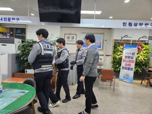 À̹ø ÈÆ·ÃÀº ÇàÁ¤¾ÈÀüºÎ ¹Î¿øÀÎÀÇ À§¹ýÇàÀ§ ´ëÀÀ ¹æ¾È Áöħ¿¡ µû¶ó ¡ã¹Î¿øÀÎ Æø¾ð¡¤ÆøÇà ¹ß»ý ¡ã¹Î¿øÀÎ ÁøÁ¤ ¹× °æ°í ¡ã»ó±ÞÀÚÀÇ Áö¿ø ¡ã»çÀü °íÁö ÈÄ ÈÞ´ë¿ë º¸È£Àåºñ ³ìÈ¡¤³ìÀ½ ¡ãºñ»óº§ È£Ãâ ¹× ¹Î¿øÀÎ Á¦Áö ¡ãÇÇÇØ °ø¹«¿ø °Ý¸®¿Í ¹æ¹® ¹Î¿øÀÎ ´ëÇÇ ¡ãƯÀÌ ¹Î¿øÀÎ Á¦¾Ð ¹× °æÂû ÀÎ°è ¼øÀ¸·Î ÁøÇàµÇ¾ú´Ù.