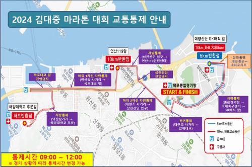 ÀÌ ³¯ °æ±â´Â ¿ÀÀü 9½Ã ÇÏÇÁ°æ±â¸¦ ½ÃÀÛÀ¸·Î 10km, 5km°¡ 10ºÐ °£°ÝÀ¸·Î Ãâ¹ßÇÑ´Ù. Á¾¸ñº° ±¸°£À¸·Î´Â 5km´Â ´ë¾ç»ê´Ü¿¡¼, 10km´Â »ðÁø»ê´Ü¿¡¼ À¯ÅÏÇØ ´ë¾ç»ê´ÜÀ¸·Î, ÇÏÇÁ´Â ¸ñÆ÷ÇØ¾ç´ëÇб³ ÈĹ®¿¡¼ ¹ÝÈ¯ÇØ ´ë¾ç»ê´ÜÀ» Áö³ª Á¾ÇÕ°æ±âÀå·Î µµÂøÇÏ´Â ÄÚ½ºÀÌ´Ù.