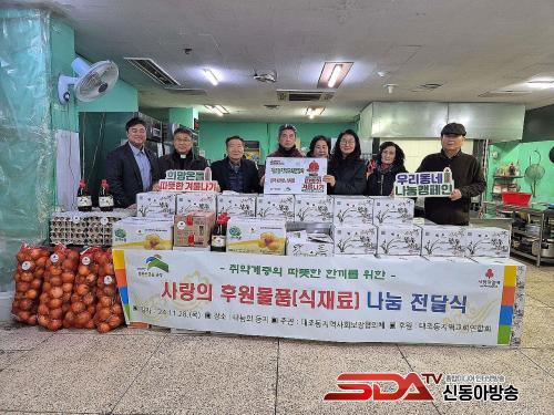´ëÁ¶µ¿¿¡¼´Â ¾î·Á¿î ÀÌ¿ôÀ» µ½°íÀÚ ÇÏ´Â ¸¶À½À» Çѵ¥ ¸ð¾Æ ¿ÃÇØ ´ëÁ¶µ¿Áö¿ª±³È¸¿¬ÇÕȸ°¡ Çü¼ºµÆ´Ù. ´ëÁ¶ ¾Æ³ª¹Ù´Ù ÀåÅÍ¿¡ Âü¿©ÇØ »ý±ä ¼öÀͱÝÀ¸·Î ±èÄ¡ 42¹Ú½º¿Í ¾çÆÄ, °¨ÀÚ µî ½ÄÀç·á¸¦ ±¸ÀÔÇØ °ü³» »çȸÀû Çùµ¿Á¶ÇÕÀÎ ³ª´®ÀÇ µÕÁö¿¡ Àü´ÞÇß´Ù.