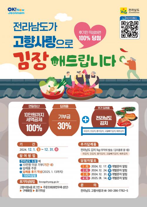 À̺¥Æ® Âü¿©´Â Àü³² ¿Ü¿¡ ÁÖ¼Ò¸¦ µÐ »ç¶÷ÀÌ¸é ´©±¸³ª °¡´ÉÇÏ´Ù. ¡®°íÇâ»ç¶ûeÀ½¡¯À̳ª Àü±¹ ³óÇùÀºÇàÀ» ÅëÇØ Àü³²µµÃ»¿¡ 10¸¸ ¿ø ÀÌ»ó ±âºÎÇÑ ÈÄ, °íÇâ»ç¶ûeÀ½¿¡¼ ´ä·ÊǰÀ» ÁÖ¹®¡¤¼ö·ÉÇÑ ´ÙÀ½ Èı⸦ ÀÛ¼ºÇϸé ÀÚµ¿À¸·Î ½ÅûµÈ´Ù.