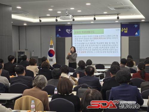 Àü¶ó³²µµ±³À°Ã» Çлý»ýȰ±³À°°ú ±è°æ½Å ÀåÇл簡 Çб³Æø·ÂÀÇ µ¿Çâ°ú Çб³ÀåÀÇ ¿ªÇÒ¿¡ ´ëÇÑ ³»¿ëÀ¸·Î °ÀǸ¦ ÁøÇàÇßÀ¸¸ç, Çб³ÀåÀÇ ÁÖµµÀû ¿ªÇÒ°ú Ã¥ÀÓÀ» °Á¶ÇÏ¸ç ½Å·Ú¿Í ¼ÒÅë ±â¹ÝÀÇ ¾ÈÀüÇÑ Çб³¹®È¸¦ Á¶¼ºÇÏ´Â µ¥ ³ë·ÂÇÒ °ÍÀ» °Á¶Çß´Ù. À̹ø ¿¬¼ö¸¦ ÅëÇØ °ü°èȸº¹ ÇÁ·Î±×·¥ÀÌ Àû±Ø Ȱ¿ëµÇ¾î Çб³Æø·Â ¿¹¹æ°ú »ç¾È󸮿¡ ÀÖ¾î Çб³ÀåÀÇ ¸®´õ½ÊÀÌ °ÈµÉ Àü¸ÁÀÌ´Ù.
