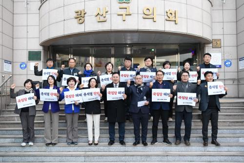Áýȸ¿¡´Â ´õºÒ¾î¹ÎÁִ硤Áøº¸´ç¡¤Á¤ÀÇ´ç ¼Ò¼Ó ±¤»ê±¸ÀÇ¿ø 18¸í Àü¿øÀÌ Âü¿©ÇØ ¸ñ¼Ò¸®¸¦ ¸ð¾Ò´Ù.
