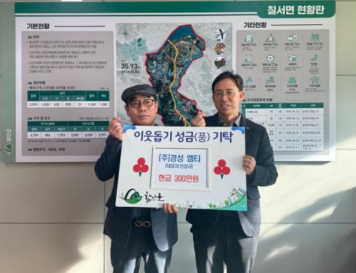[½Åµ¿¾Æ¹æ¼Û °æ³²ÇÔ¾È=À̽ŵ¿±âÀÚ] ÇԾȱº Ä¥ºÏ¸é °¡¿¬»ê´Ü ±â¾÷üÀÎ ¢ß°æ¼º¿¥Æ¼ Áø¼º±Ô ´ëÇ¥´Â 17ÀÏ °ü³» ¾î·Á¿î ÀÌ¿ôÀ» À§ÇØ ½á´Þ¶ó¸ç Ä¥¼­¸é, Ä¥ºÏ¸é¿¡ °¢°¢ ¼º±Ý 300¸¸¿ø(ÃÑ 600¸¸¿ø)À» ±âŹÇß´Ù. Áø¼º±Ô ´ëÇ¥´Â ¡°±â¾÷ü Á÷¿øµéÀÇ ¶æÀ» ¸ð¾Æ ±âŹÇÏ°Ô µÆ´Ù¡±¸ç, ¡°¾î·Æ°í ¼Ò¿ÜµÈ ÀÌ¿ôµé¿¡°Ô Á¶±ÝÀ̳ª¸¶ µµ¿òÀÌ µÇ¾î À̵éÀÌ µû¶æÇÑ °Ü¿ïÀ» º¸³¾ ¼ö Àֱ⸦ ¹Ù¶õ´Ù¡±°í ¸»Çß´Ù.