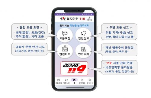 ¡¸³²¿ø º¹Áö¾ÈÀü 119¡¹ ¾ÛÀº ¡â±ä±Þ±¸Á¶ 119 ¡âµµ¿ò ¿äû ¡â¾ÈÀü ½Å°í ¡â¾ÈÀü Áöµµ ¡â¾ÈÀü ¼öÄ¢ µî 5°¡Áö ÁÖ¿ä ±â´ÉÀ» Á¦°øÇϸç, ½Ã¹ÎµéÀÌ ½Ã°£°ú Àå¼Ò¿¡ ±¸¾Ö¹ÞÁö ¾Ê°í À§±Þ »óȲ¿¡¼ ¼Õ½±°Ô µµ¿òÀ» ¿äûÇϰųª ½Å°íÇÒ ¼ö ÀÖµµ·Ï ±¸ÇöµÇ¾ú´Ù.