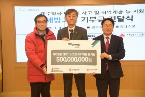 ¹ÚÁ¤Èñ ¼¼¹æÀüÁö¢ß ¾÷¹«ÃѰýÀº ¡°¼¼¹æ±×·ìÀº ¿À·£ ½Ã°£ ±¤ÁÖ¿Í °ü°è¸¦ À̾î¿Â ±â¾÷À¸·Î½á À̹ø ±âºÎ°¡ Áö¿ª»çȸ¿¡ ÀÛÀº ÈûÀÌ µÇ±â¸¦ ¹Ù¶õ´Ù¡±¸ç ¡°¾ÕÀ¸·Îµµ ±¤ÁÖ¿Í ÇÔ²² ¾î·Á¿òÀ» ³ª´©°í »ó»ý ¹ßÀüÀ» À§ÇÑ ´Ù¾çÇÑ »çȸ°øÇåȰµ¿À» Áö¼ÓÇϰڴ١±°í ¸»Çß´Ù.