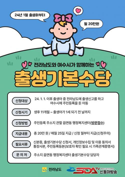 Áö±Þ ´ë»óÀº 2024³â 1¿ù 1ÀÏ ÀÌÈÄ Ãâ»ý¾Æ Áß Àü¶ó³²µµ¿¡ Ãâ»ý½Å°í¸¦ Çϰí, Ãâ»ý¾Æ¿Í º¸È£ÀÚ Áß 1¸íÀÌ ¿©¼ö½Ã¿¡ Áֹεî·ÏÀ» µÎ°í °ÅÁÖ ÁßÀÎ °¡±¸´Ù.