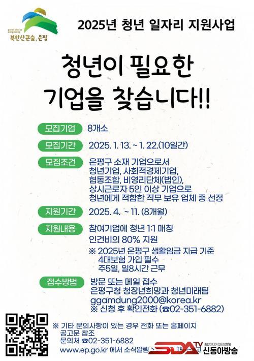[½Åµ¿¾Æ¹æ¼Û ÀºÆò±¸=À̽ŵ¿±âÀÚ] ÀºÆò±¸´Â û³â ±¸Á÷³­ ÇØ¼Ò¸¦ À§ÇØ ¡®2025³â û³â ÀÏÀÚ¸®»ç¾÷¡¯¿¡ Âü¿©ÇÒ ±â¾÷ ¶Ç´Â ´Üü¸¦ ¸ðÁýÇÑ´Ù°í ¹àÇû´Ù.