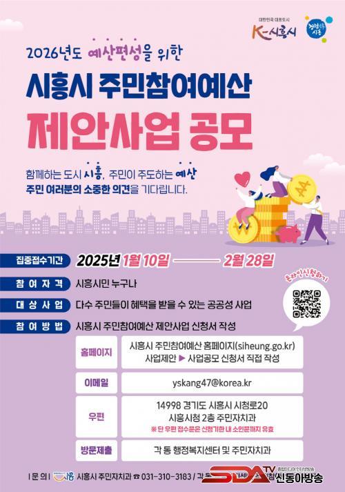 °ø¸ð ½ÅûÀº ¡®½ÃÈï½Ã ÁÖ¹ÎÂü¿©¿¹»ê¡¯ ´©¸®Áý(https://juminys.siheung.go.kr/)ÀÇ ¡®»ç¾÷ Á¦¾È-»ç¾÷°ø¸ð¡¯¶õ¿¡ Á÷Á¢ ¿Â¶óÀÎÀ¸·Î Çϰųª ½Åû¼¸¦ ³»·Á¹Þ¾Æ À̸ÞÀÏ(yskang47@korea.kr) ¶Ç´Â ¿ìÆí(½Ãû·Î 20, ½ÃÈï½Ãû 2Ãþ ÁÖ¹ÎÀÚÄ¡°ú)À¸·Î Á¦ÃâÇÏ¸é µÈ´Ù. ¶Ç´Â, °¢ µ¿ ÇàÁ¤º¹Áö¼¾ÅÍ ¹× ½ÃÈï½Ãû ÁÖ¹ÎÀÚÄ¡°ú¿¡ ¹æ¹®ÇØ ½ÅûÇÒ ¼ö ÀÖ´Ù.
