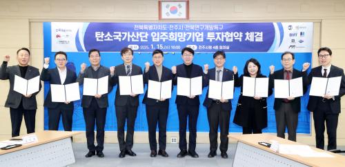 [½Åµ¿¾Æ¹æ¼Û=À̺´½Ä±âÀÚ] ÀüºÏƯº°ÀÚÄ¡µµ´Â 15ÀÏ ÀüÁÖ½Ãû¿¡¼­ ÀüÁÖ½Ã, ¿¬±¸°³¹ßƯ±¸ÁøÈïÀç´Ü°ú ÇÔ²² ÀüÁÖ Åº¼Ò¼ÒÀç ±¹°¡»ê´Ü¿¡ ÀÔÁÖ¸¦ Èñ¸ÁÇÏ´Â 7°³ ±â¾÷°ú ÅõÀÚÇù¾àÀ» ü°áÇß´Ù°í ¹àÇû´Ù.