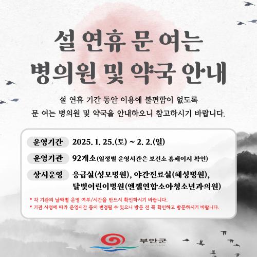 ¼³ ¿¬ÈÞ ±â°£ ¿î¿µÇÏ´Â ÀÇ·á±â°ü ¹× ¾à±¹ Á¤º¸´Â ºÎ¾È±ºÃ» ¹× º¸°Ç¼Ò ȨÆäÀÌÁö¿¡¼ È®ÀÎÇÒ ¼ö ÀÖÀ¸¸ç ÀÀ±ÞÀÇ·áÆ÷ÅÐ(www.e-gen.or.kr), 129 º¸°Çº¹Áö»ó´ã¼¾ÅÍ, 119±¸±Þ»óȲ°ü¸®¼¾ÅÍ¿¡¼ ¾È³»¹ÞÀ» ¼ö ÀÖ´Ù.