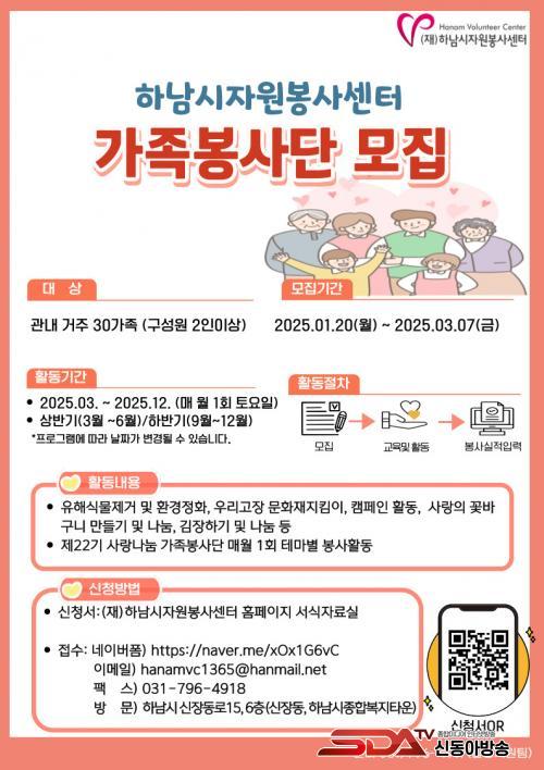 °¡Á·ºÀ»ç´ÜÀº 2025³â 3¿ù ±âÃʱ³À° ¹× ¹ß´ë½ÄÀ» ½ÃÀÛÀ¸·Î 12¿ù±îÁö ¸Å¿ù 1~2ȸ(Åä¿äÀÏ) ºÀ»çȰµ¿¿¡ Âü¿©ÇÏ°Ô µÈ´Ù. Ȱµ¿ ³»¿ëÀº Çϳ²½Ã ¹®ÈÀç ÁöÅ´ÀÌ, Ä·ÆäÀΠȰµ¿ µî ´Ù¾çÇÑ Å׸¶º° ÇÁ·Î±×·¥À¸·Î ±¸¼ºµÇ¾î ÀÖ´Ù. ÃÑ 8ȸ ÀÌ»ó Ȱµ¿ ÈÄ¿¡´Â 1365 ÀÚ¿øºÀ»çÆ÷ÅÐÀ» ÅëÇØ ºÀ»çȰµ¿ ½Ã°£À» ÀÎÁ¤¹ÞÀ» ¼ö ÀÖ´Ù.