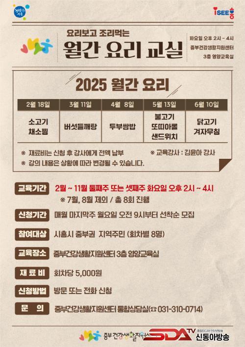 ¡®¿ä¸® º¸°í Á¶¸® ¸Ô´Â ¿ù°£ ¿ä¸® ±³½Ç¡¯Àº 2¿ùºÎÅÍ 11¿ù±îÁö(7, 8¿ùÀº Á¦¿Ü) µÑ° ÁÖ ¶Ç´Â ¼Â° ÁÖ È¿äÀÏ ¿ÀÈÄ 2½ÃºÎÅÍ 2½Ã°£ µ¿¾È Áߺΰǰ»ýȰÁö¿ø¼¾ÅÍ 3Ãþ ¿µ¾ç±³À°½Ç¿¡¼ ÁøÇàµÇ¸ç, ÁßºÎ±Ç Áö¿ªÁֹΠ´©±¸³ª Âü¿©ÇÒ ¼ö ÀÖ´Ù.