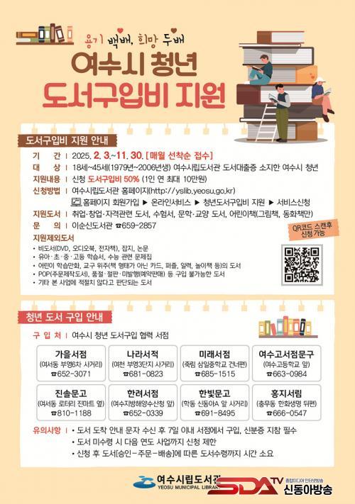 û³â µµ¼±¸ÀÔºñ Áö¿ø »ç¾÷¿¡ ´ëÇÑ ÀÚ¼¼ÇÑ ³»¿ëÀº ½Ã¸³µµ¼°ü ´©¸®Áý(yslib.yeosu.go.kr)¿¡¼ È®ÀÎÇϰųª µµ¼°ü¿î¿µ°ú(¢Ï061-659-2857)·Î ¹®ÀÇÇÏ¸é µÈ´Ù.