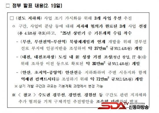 ¡Û öµµÁöÇÏÈ »ç¾÷Àº ¼öµµ±Ç(¼¿ï, ÀÎõ, °æ±â)ÀÇ °æºÎ¡¤°æÀμ± ±¸°£ µî°ú ´ëÀü(´ëÀü¿ª, Á¶Â÷Àå), ºÎ»ê(ºÎ»êÁø¿ª ±¸°£ µî)ÀÌ Áö³ 24. 10. ½Åû