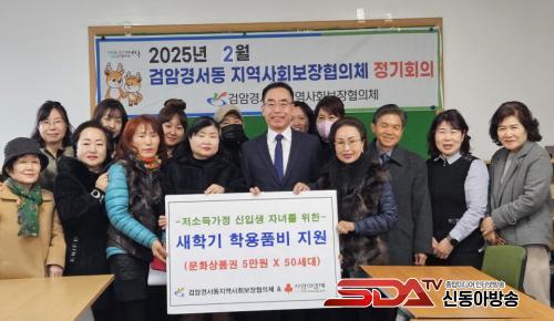 [½Åµ¿¾Æ¹æ¼Û ÀÎõ= À±¹Î½Ä±âÀÚ] °Ë¾Ï°æ¼­µ¿ Áö¿ª»çȸº¸ÀåÇùÀÇü(µ¿Àå ȲÀμ±, °øµ¿À§¿øÀå Á¤ÃáÀÚ)´Â Áö³­ 20ÀÏ »õÇб⸦ ¸Â¾Æ °ü³» Àú¼Òµæ ½ÅÀÔ»ý 50¸íÀ» ´ë»óÀ¸·Î °¡±¸´ç 5¸¸¿ø »ó´çÀÇ ¹®È­»óǰ±ÇÀ» Áö¿øÇß´Ù°í 21ÀÏ ¹àÇû´Ù.
