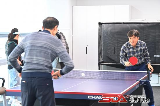 ´ÙÀ½À¸·Î, ¾î¸£½ÅµéÀÇ °Ç°­À» ì±â´Â ¿îµ¿ °ø°£À» ã¾Æ°¬´Ù. ¸ÕÀú ¹æ¹®ÇÑ Å¹±¸ ±³½Ç¿¡¼­´Â °æÄèÇÑ Å¹±¸°ø ¼Ò¸®°¡ °ø°£À» °¡µæ ä¿ü´Ù. ³×Æ®¸¦ »çÀÌ¿¡ µÎ°í ÁÖ°í¹Þ´Â °ø ¼Ó¿¡¼­ ¾î¸£½ÅµéÀÇ ÁýÁßÇÑ ´«ºû°ú Ȱ·ÂÀÌ ´À²¸Á³´Ù. ¡°Ã³À½¿£ °øÀ» ¸ÂÈ÷±âµµ ¾î·Á¿ü´Âµ¥, °è¼Ó ÇÏ´Ù º¸´Ï Á¡Á¡ °¨ÀÌ ÀâÇô¿ä. ¸öµµ °¡»ÓÇØÁö°í ±âºÐµµ ÇѰá ÁÁ¾ÆÁ³¾î¿ä.¡± ¾î¸£½ÅµéÀº ¼­·Î ½Ç·ÂÀ» °Ü·ç¸ç ¿ôÀ½²ÉÀ» ÇÇ¿ü´Ù.