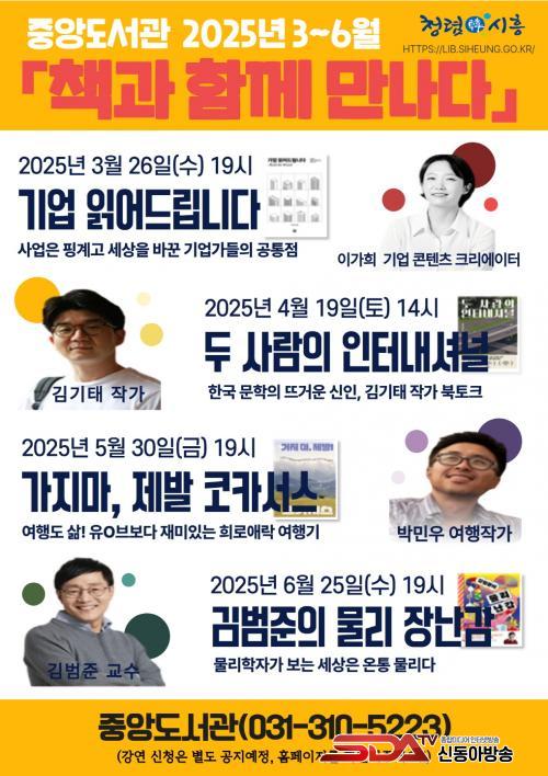 [½Åµ¿¾Æ¹æ¼Û ½ÃÈï½Ã=À̽ŵ¿±âÀÚ] ½ÃÈï½ÃÁß¾Óµµ¼­°üÀÌ ÀÛ°¡¿Í ÇÔ²²ÇÏ´Â ½Éµµ Àִ å À̾߱â, ¡®Ã¥°ú ÇÔ²² ¸¸³ª´Ù¡¯ÀÇ 2025³â 3¿ùºÎÅÍ 6¿ù±îÁöÀÇ ÀÛ°¡ Ã⿬ÁøÀ» °ø°³Çß´Ù. ¡®Ã¥°ú ÇÔ²² ¸¸³ª´Ù¡¯´Â ¸Å¿ù ÇÑ ¹ø¾¿ ÁøÇàµÇ´Â °­¿¬ ÇÁ·Î±×·¥À¸·Î, 3¿ùºÎÅÍ 6¿ù±îÁö °¢ ºÐ¾ßÀÇ ÀúÀÚ¸¦ ÃÊÃ»ÇØ ±íÀÌ ÀÖ´Â Àι®ÇÐ °­¿¬À» ¼±º¸ÀδÙ.